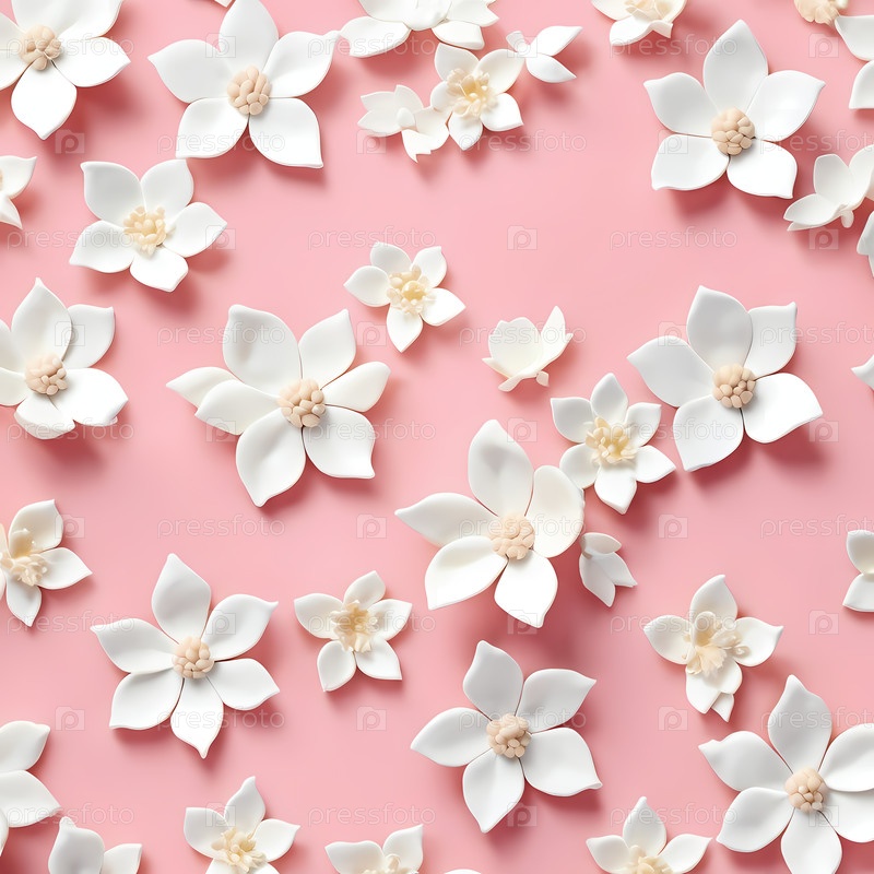 Потрясающий массив белых цветов с деликатными деталями украшает мягкий розовый фон, вызывая спокойствие и элегантностьидеально подходит для любого цветочного дизайна Generative AI