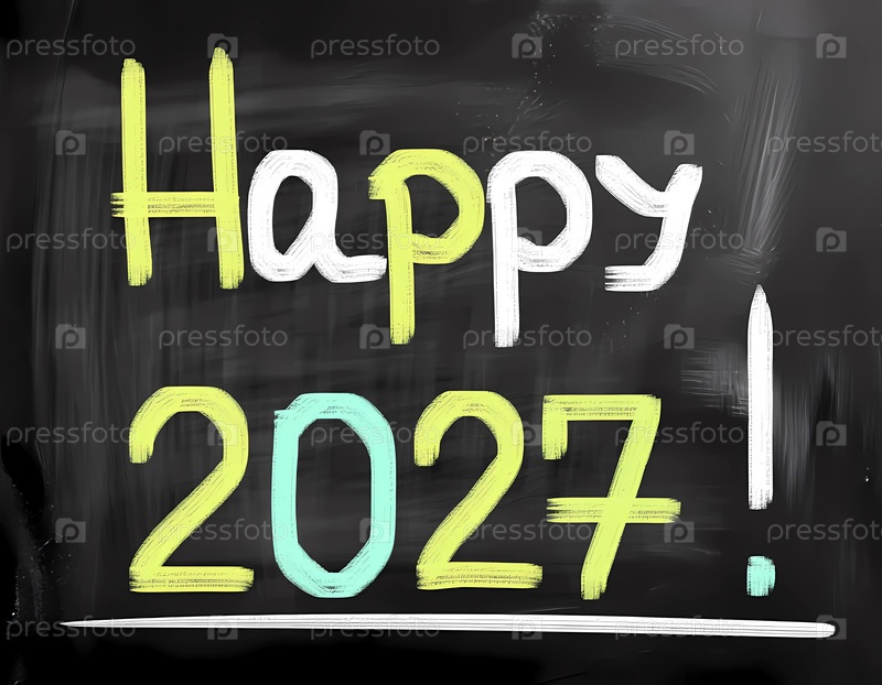 На доске отображается приветствие на 2027 год с буквами, написанными в ярких цветах.Этот знак приглашает людей отпраздновать новый год Generative AI