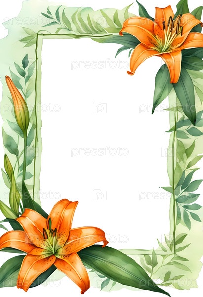 Красивые оранжевые лилии украшают пустую открытку, идеально подходящую для празднования таких дней рождения, каникул или юбилеев с привлекательным акварельным дизайном Generative AI