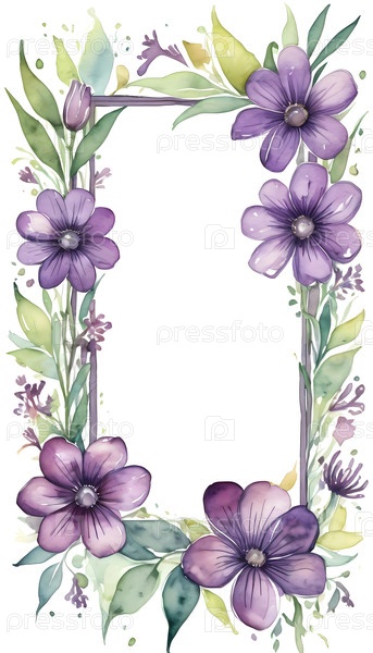 Потрясающий макет имеет фиолетовые фиалки среди пышного зеленого листья, с пространством для персонализированных приветствий или сообщений на любой случай