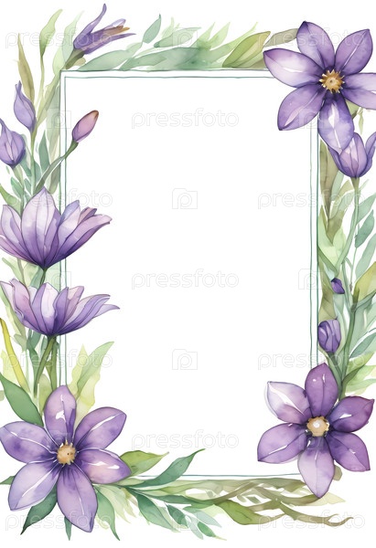 Деликатный акварельный дизайн с фиолетовыми фиалками, окружающими пустую зону, идеально подходит для сердечных надписей на дни рождения, годовщины или специальные праздники