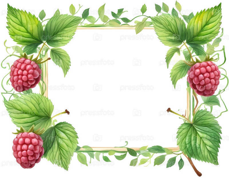 Красивый акварельный рисунок малиновых художественных карточек с пышными зелеными листьями и пустым пространством для персонализированных надписей Генеративный ИИ
