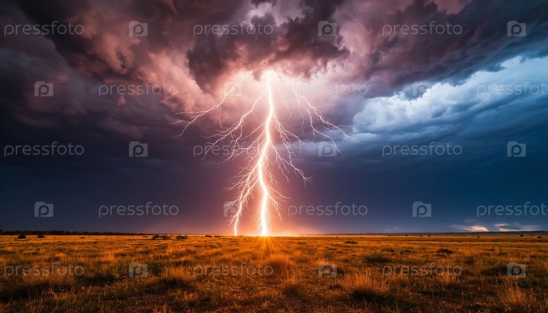 Облака и молнии поражают поле во время грозы