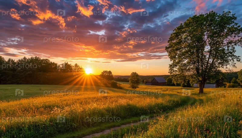 Вечеринный закат над рекой, летний пейзаж