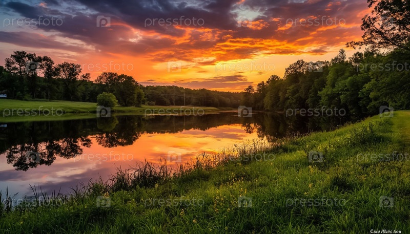 Вечеринный закат над рекой, летний пейзаж