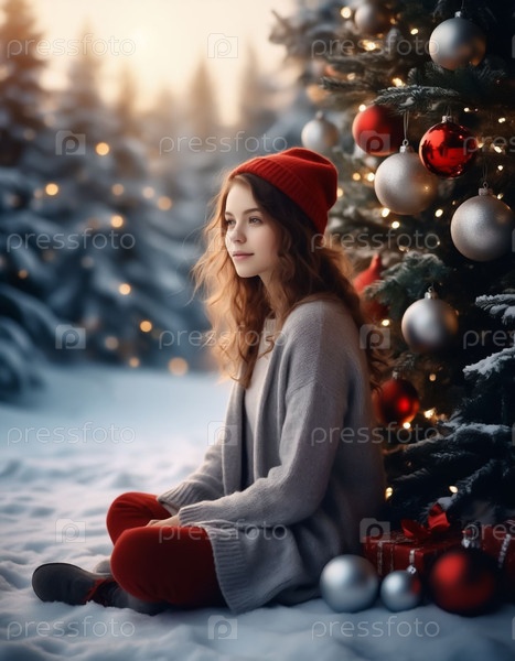 Праздничный женский портрет на сезонном фоне