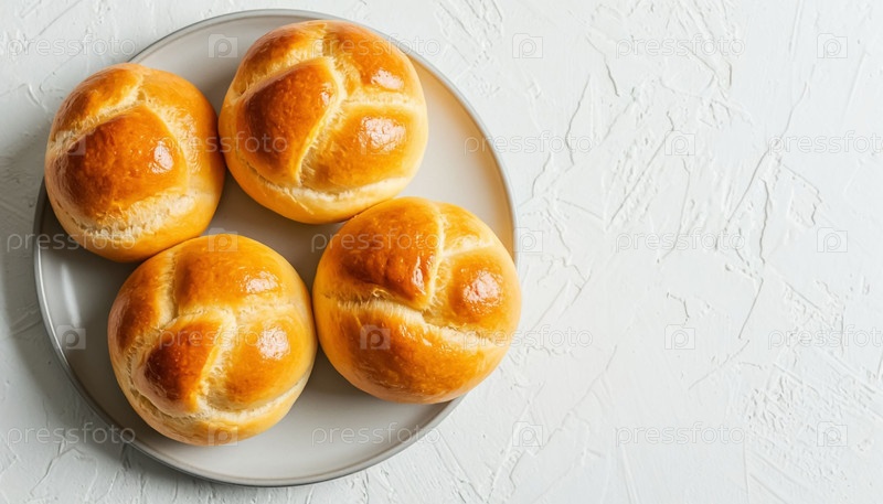 Домашние булочки свежие хлебные изделия на белом фоне