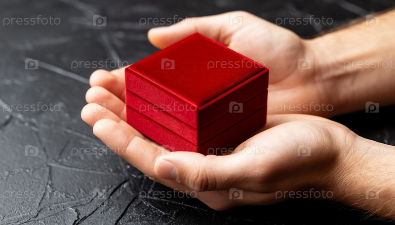 Коробка с ювелирными украшениями в руке мужчины