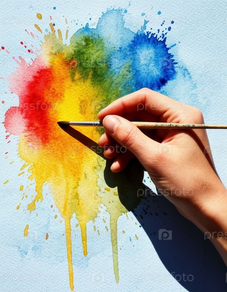 Щетка, создающая пятна акварели в руке