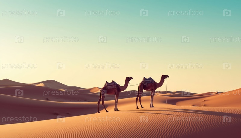 Минималистический ландшафт белой пустыни с силуэтами верблюдов