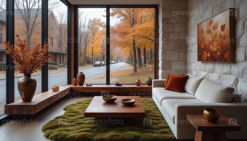 Осенний уютный номер с натуральным камнем и мохом