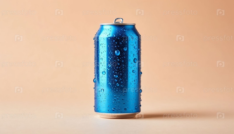 Синяя металлическая банка лимонада на пастельном фоне