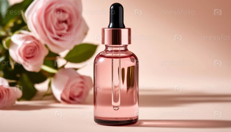 Пастельные бутылки с белыми крышками и цветами на деревянном подставке