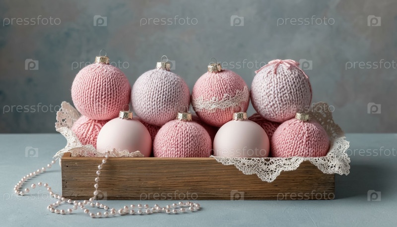 Пастельная вязаная шерсть рождественские шары в винтажном стиле деревянный ящик. экологически чистые игрушки