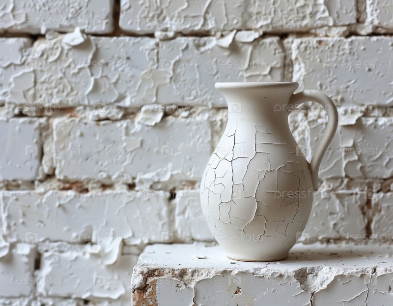 Погодный глиняной кувшин против огорченного кирпичного фона
