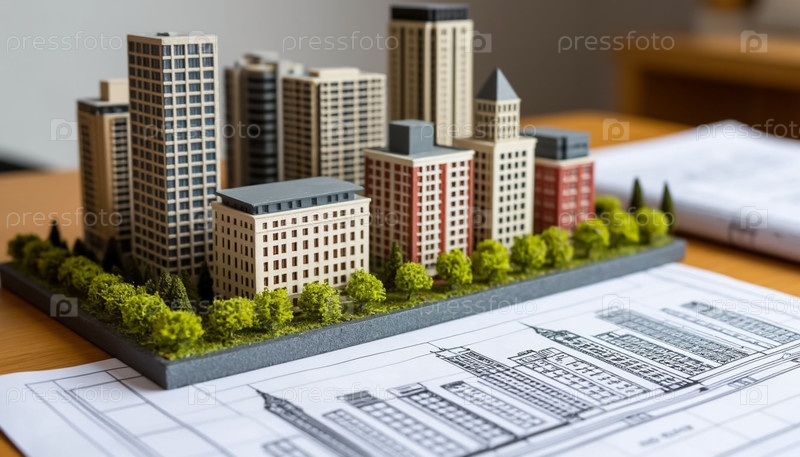 Модель жилого района на столе архитектора