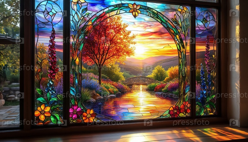 яркое витражное стекло радужный спектр