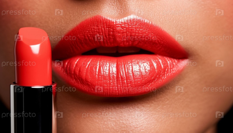Красная помада и красные женские губы вблизи