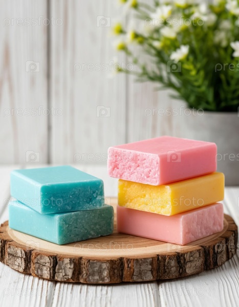 Пастельное радужное мыло для детей на белом столе - игривое, нетоксичное и ручно изготовленное время ванны весело