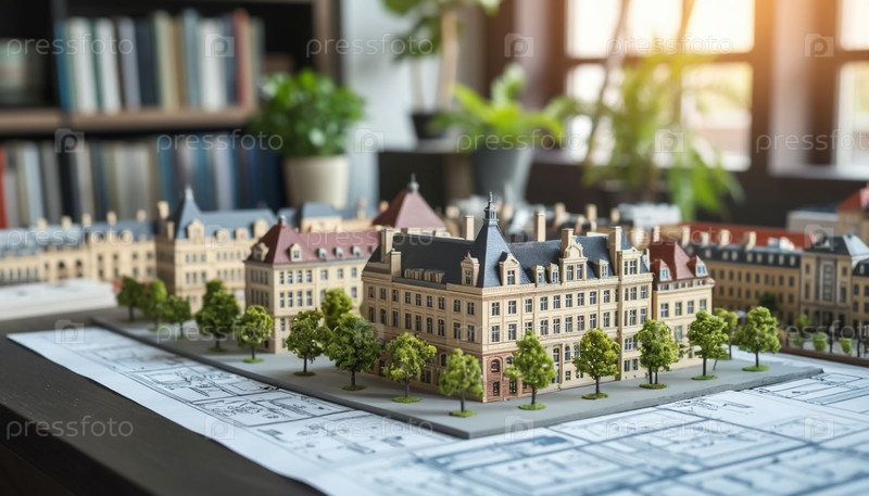 Модель жилого района на столе архитектора