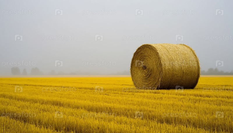 Сеной в одиночестве на поле.Минималистский ландшафт