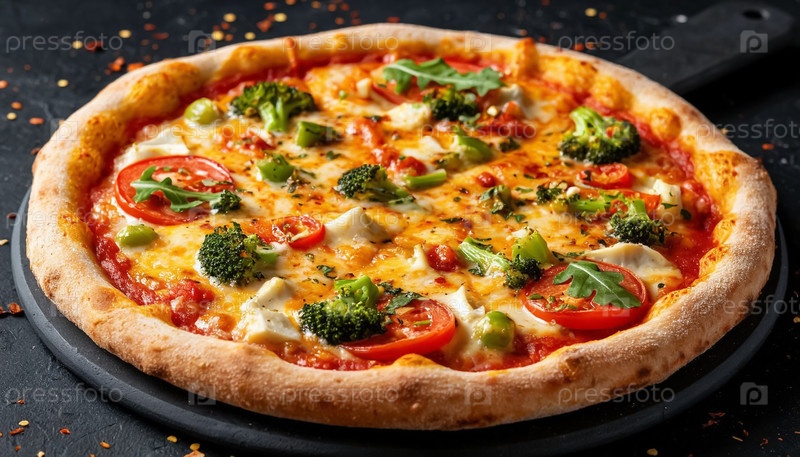Веганская овощная пицца на черном фоне