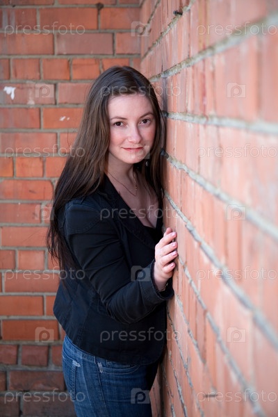 Девушка у кирпичной стены