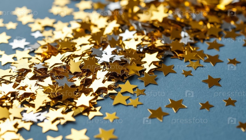 Золотые звезды конфетти на синем фоне