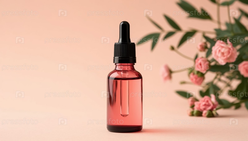 Пастельные бутылки с белыми крышками и цветами на деревянном подставке