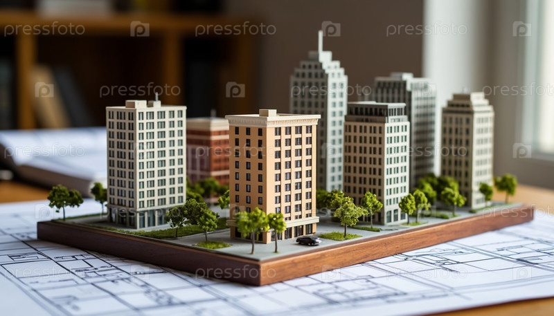 Модель жилого района на столе архитектора