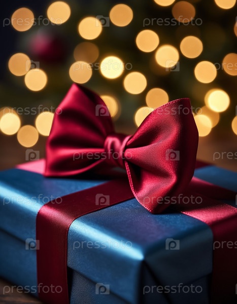 Present with Ribbon Bokeh Holiday Lights Представьте с лентой праздничные огни боке