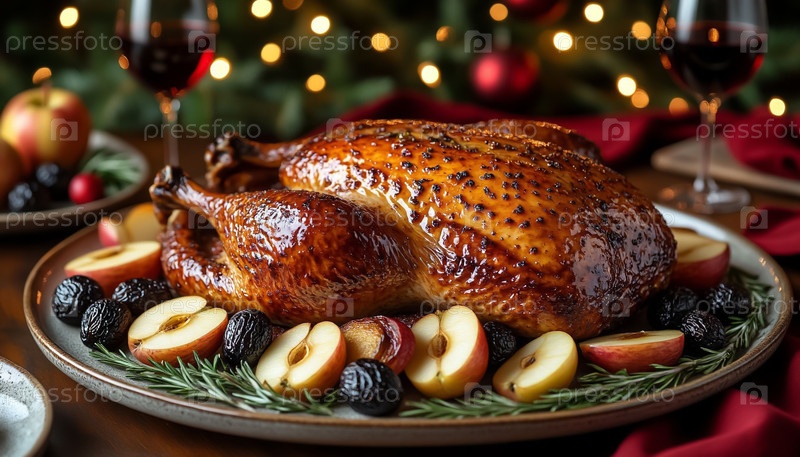 Золотопеченный праздничный гусь с сливками и розмарином