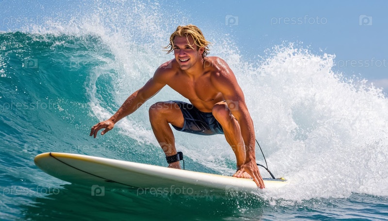 Красивый рыжеволосый австралийский парень в море на доске для серфинга в солнечную погоду