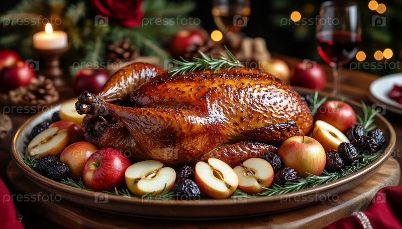 Жареный рождественский гусь с хрустящей кожей и яблоками