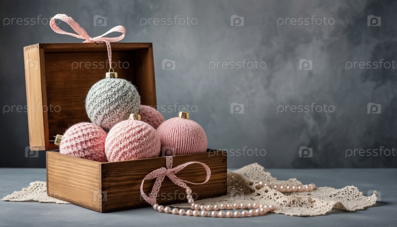 Пастельная вязаная шерсть рождественские шары в винтажном стиле деревянный ящик. экологически чистые игрушки