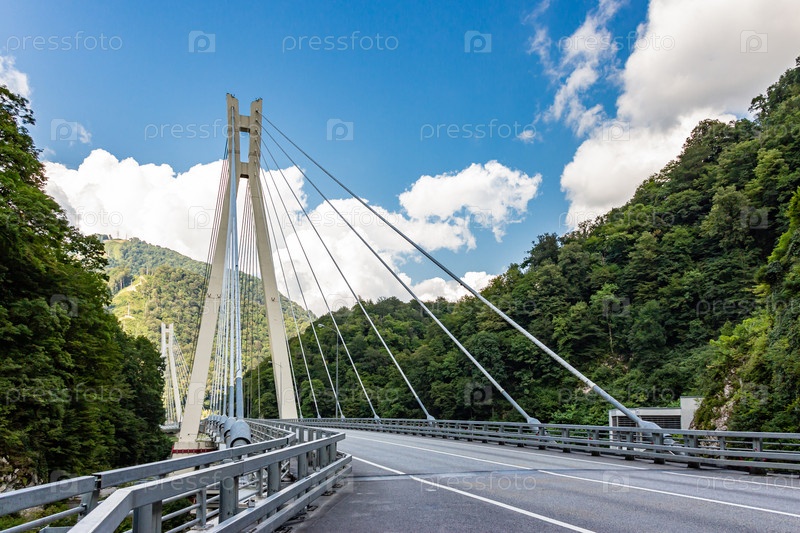 Первый вантовый мост на юге России над рекой Мзымта на трассе А-149 Адлер — Красная Поляна, Сочи, Краснодарский край
