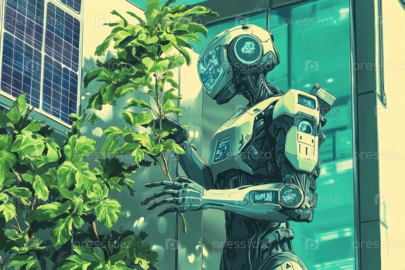 Футуристический садовник-робот, склонный к пышной зелени в городской среде