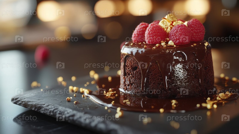 Гурманский шоколадный десерт с ягодами и мятой