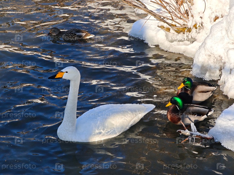 Лебеди и утки на озере Светлое зимой