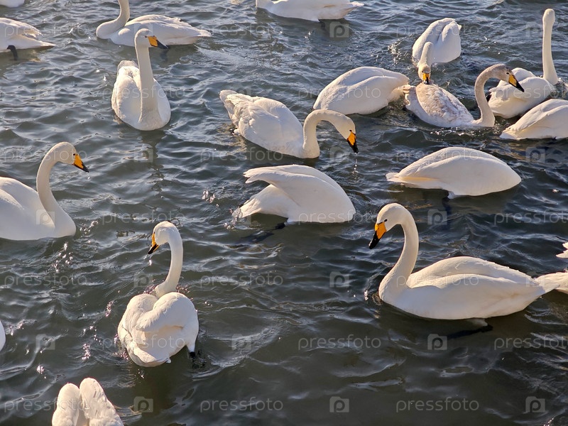 Лебеди и утки на озере Светлое зимой