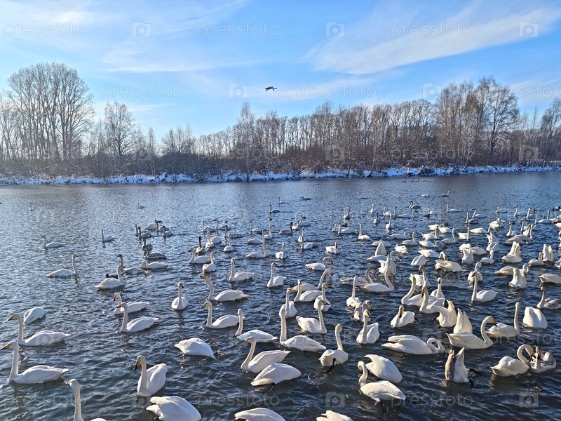 Лебеди и утки на озере Светлое зимой