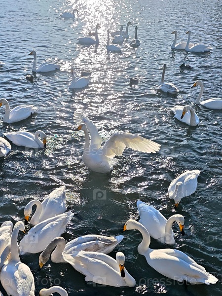 Лебеди и утки на озере Светлое зимой