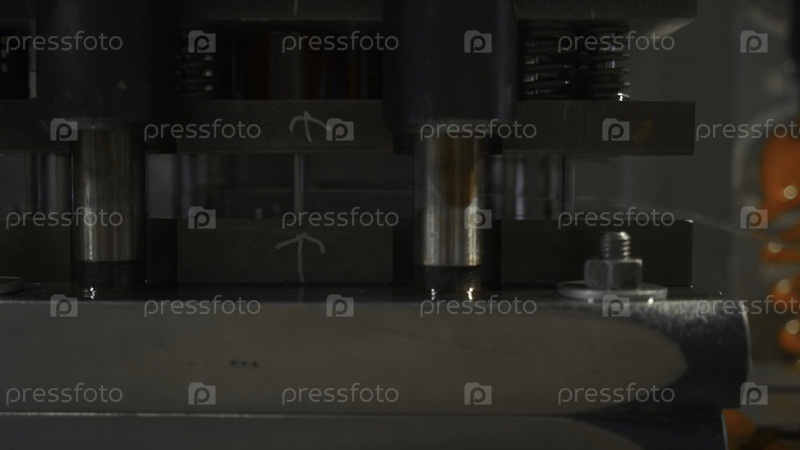 Промышленный пресс с линией из алюминия.Креативность.Прессирование и пробивание отверстий на тонкой металлической линии.Машины для прессования с алюминиевой линией в металлургическом производстве