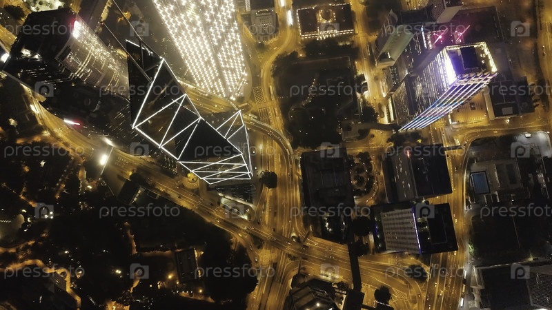 Ночной вид на остров Гонконг. акции. небоскребы в деловом центре Гонконга. Гонконг является популярным туристическим направлением Азии