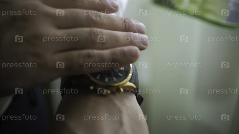 Бизнесмен рукой проверяет время на наручных часах. Клип. Бизнесмен с часами. Дорогие часы на руке бизнесмена