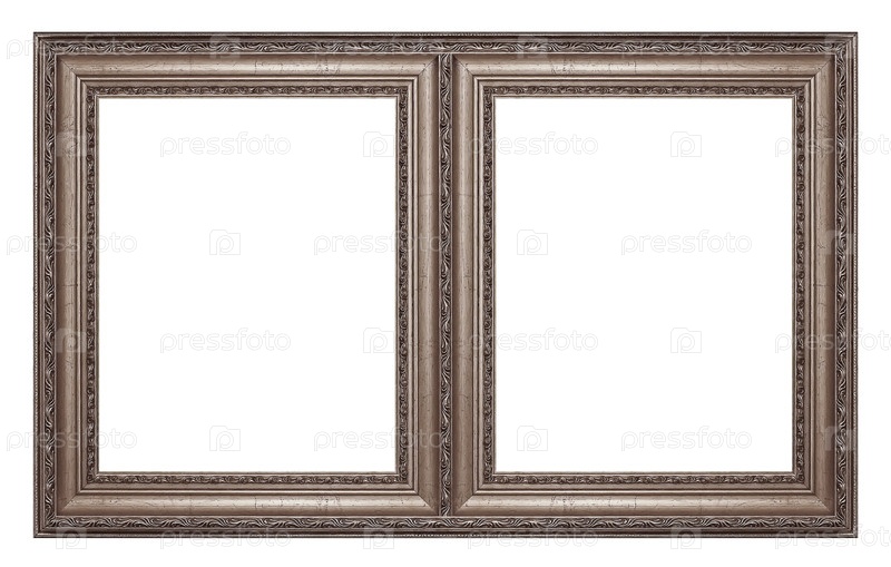 Двойная серебряная рама (диптих) для картин, зеркал или фотографий, изолированных на белом фоне