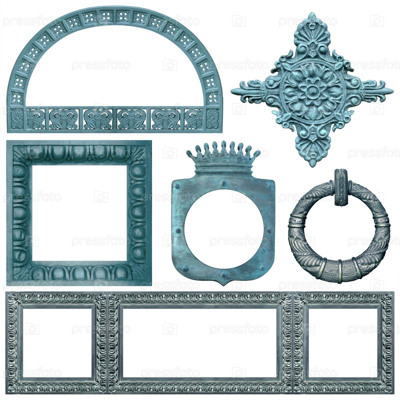 Набор бронзовых рамок для картин, зеркал или фотографий, изолированных на белом фоне