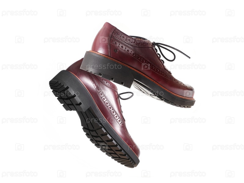 Темная вишневая кожа оксфордские ботинки с перфорированными деталями, изолированы на белом цвете и готовы к вырезу