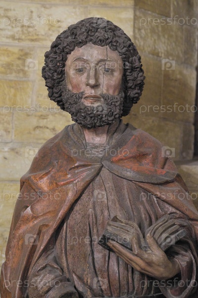 Средневековая деревянная статуя евангелиста или пророка, держащего книгу, базилика Святого Георгия, Пражский замок, Чехия