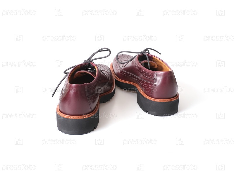 Темная вишневая кожа оксфордские ботинки с перфорированными деталями, изолированы на белом цвете и готовы к вырезу